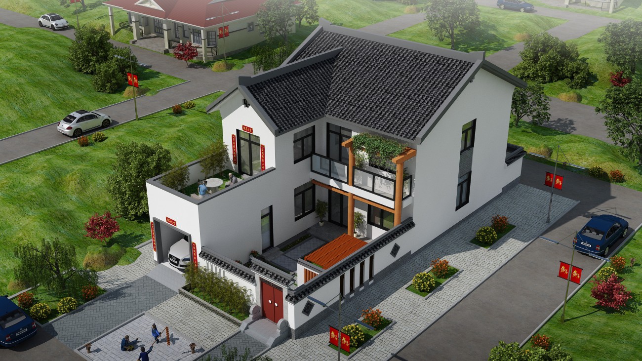 蒲江058 两层现代(11.28x11.84米)-【易设计】.