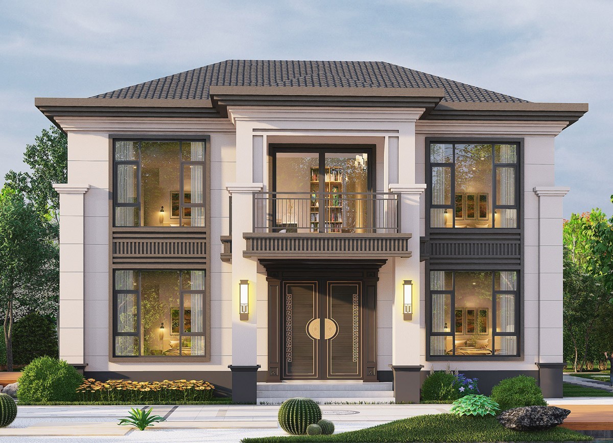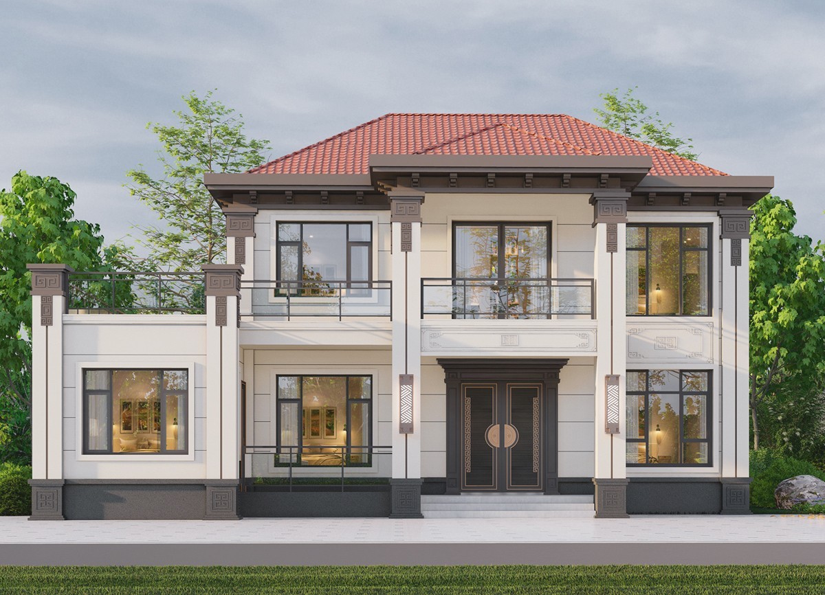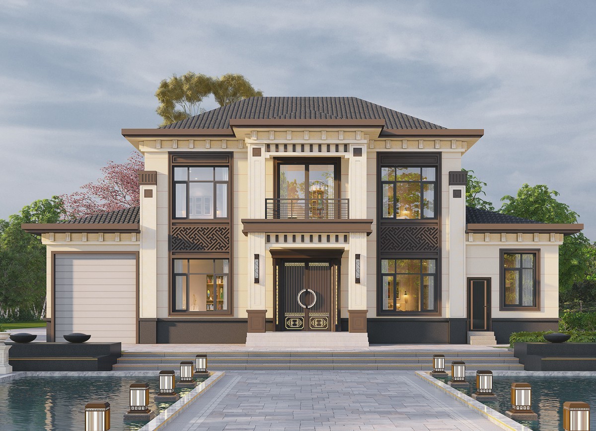 蒲江005 两层新中式(11.36x11.76米)-【易设计】